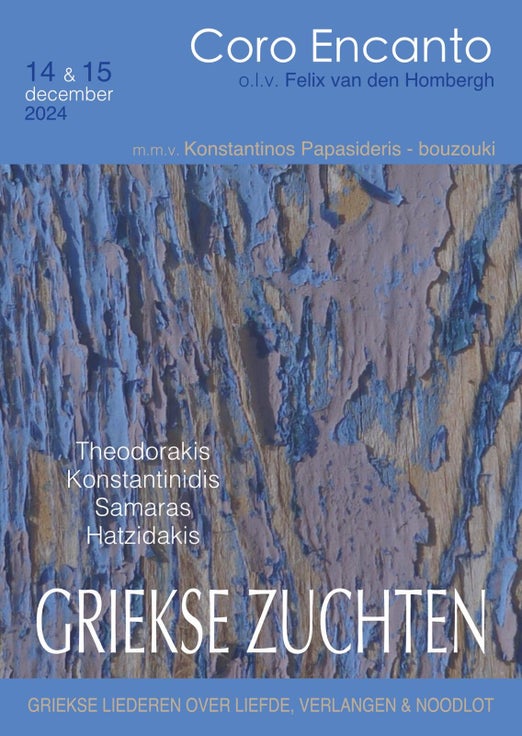 Coro Encanto wordt in dit programma begeleid door het typische Griekse instrument, de bouzouki.
